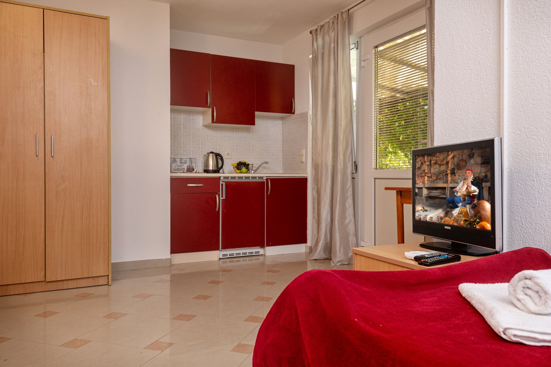 Ovaj klimatizirani studio apartman za 3 osobe gostima nudi veliki bračni krevet i krevet za jednu osobu. Gosti na raspolaganju imaju veliku terasu s pogledom na more i vrtnim namještajem. Apartman sadrži kuhinju koja je opremljena štednjakom i kuhinjskim posuđem koje je potrebno našim gostima. U apartmanu se nalazi i privatna kupaonica sa tušem i toaletnim priborom. Svi gosti na raspolaganju imaju besplatan WiFi i besplatno parkiralište koje je dostupno u okviru objekta. Kontakt: +387 63 063 623
