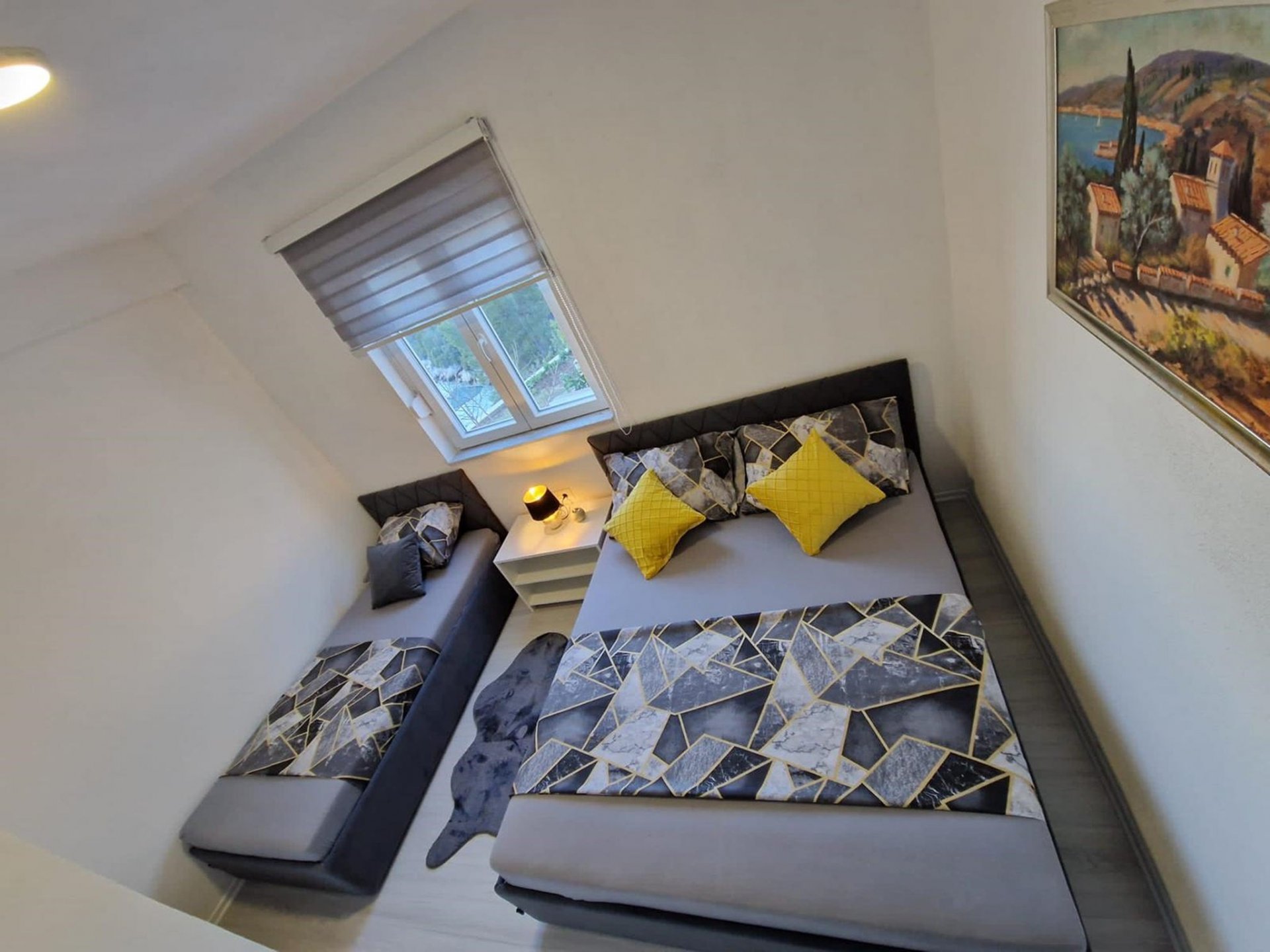 Dobrodošli u Modern Dream Apartman, vaš savršeni odmor na plaži u Neumu, Bosna i Hercegovina. Ovaj impresivan apartman s jednom spavaćom sobom nudi prostrani i udoban prostor od 37 m² s predivnim pogledom na more. Čim zakoračite unutra, dočekat će vas elegantan i moderno uređen prostor koji stvara opuštajuću atmosferu. Apartman ima potpuno opremljenu kuhinjicu s hladnjakom i kuhalom za vodu, omogućavajući vam da sami pripremate obroke kad god to želite. Dnevni boravak nudi ugodno sjedeće područje i kauč na razvlačenje za dodatne goste. Spavaća soba je opremljena udobnim bračnim krevetom i dodatnim krevetom za jednu osobu, osiguravajući dobar san za sve. Izađite na balkon i uronite u predivan pogled na more. To je idealno mjesto za uživanje u jutarnjoj kavi ili opuštanje navečer uz prekrasan zalazak sunca. Jedan od jedinstvenih istaknutih dijelova ovog objekta je privatna plaža, udaljena samo nekoliko koraka od apartmana. Zamislite da imate izravan pristup kristalno čistim vodama Jadranskog mora i netaknutoj plaži na kojoj se možete opustiti i uživati u suncu. Tijekom boravka imat ćete besplatan WiFi i besplatno privatno parkiralište na raspolaganju, osiguravajući vam praktično i ugodno iskustvo. Klimatizirani apartman također pruža ručnike i posteljinu, tako da možete putovati lagano i osjećati se kao kod kuće. Bilo da tražite romantični bijeg ili zabavan odmor na plaži s voljenima, Modern Dream Apartman nudi sve što vam je potrebno za nezaboravan boravak u Neumu. Rezervirajte sada i uživajte u luksuzu privatnog odmora na plaži.