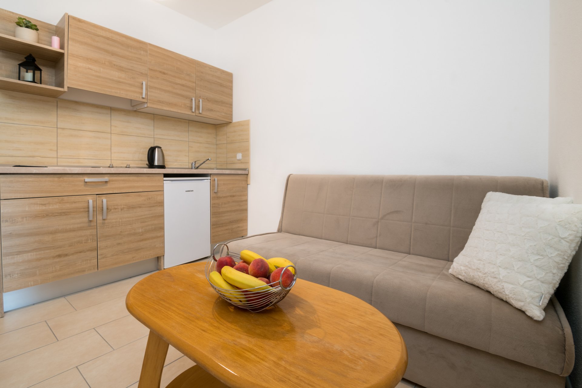 Ovaj jednosobni apartman ima bračni krevet, kauč na razvlačenje, klima uređaj, besplatni WiFi i balkon s pogledom na more. Gosti na raspolaganju imaju: ormar, vješalice, led TV, besplatni WiFi, klima uređaj, kuhinja, kuhinjsko posuđe, kuhalo za vodu, blagovaonica, hladnjak, štednjak, vrtni namještaj, balkon, vlastiti ulaz, tuš, toaletne potrepštine... Kontakt: +387 63 063 623