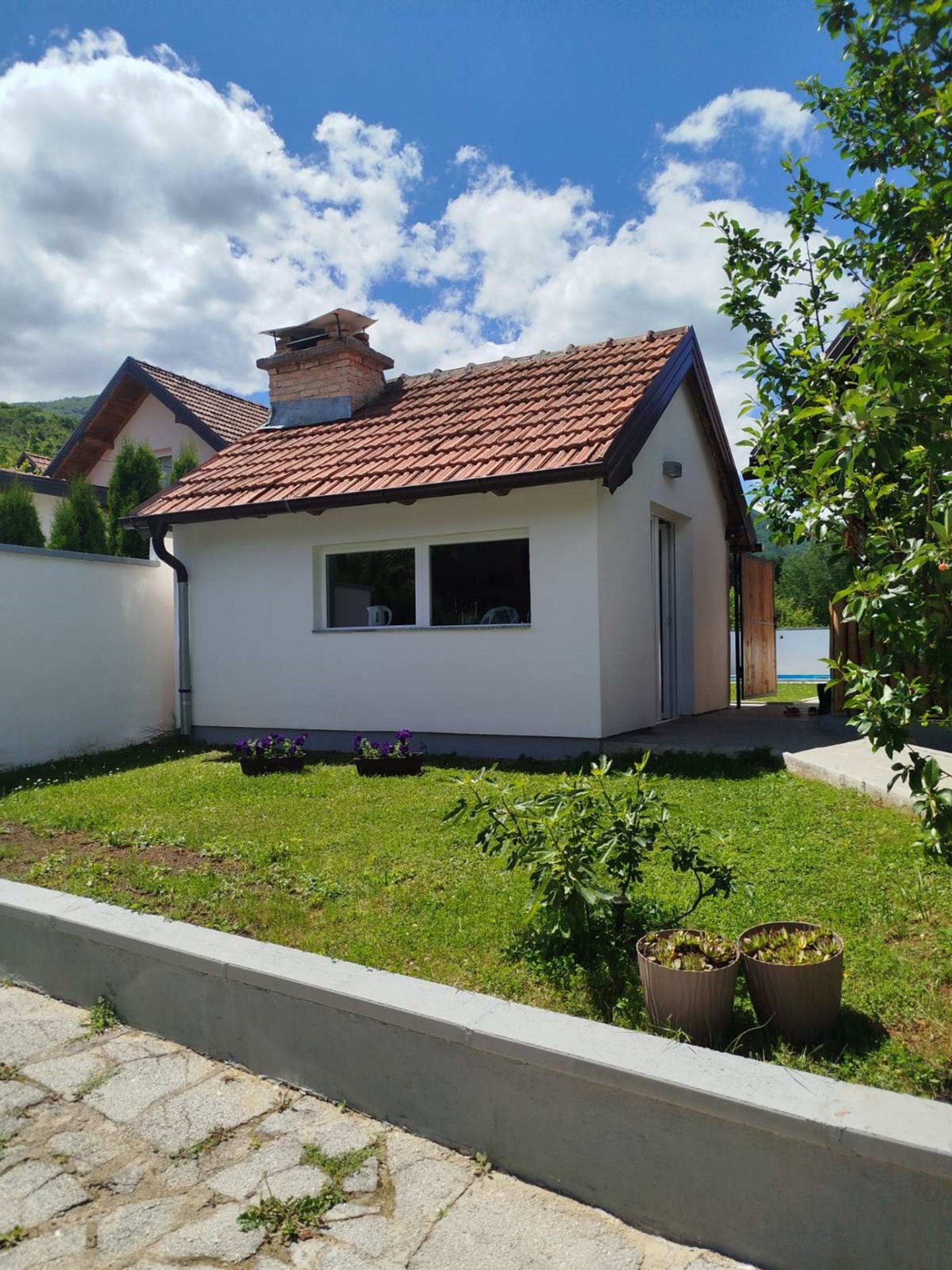 Klimatizirana kuća s bazenom sadrži jednu spavaću sobu, dnevni boravak s kaučem, potpuno opremljenu kuhinju i dvije kupaonice. Gostima su na raspolaganju besplatan WiFi i parking. U dnevnom boravku nalazi se TV s kabelskim programima i kauč koji se može koristiti kao dodatni ležaj. Kuhinja je opremljena štednjakom, posuđem, perilicom posuđa, mikrovalnom pećnicom, hladnjakom i kuhalom za vodu. Kupaonice su opremljene ručnicima, sapunom, tušem, WC-om, sušilom za kosu i toaletnim potrepštinama. Kućni ljubimci nisu dozvoljeni.